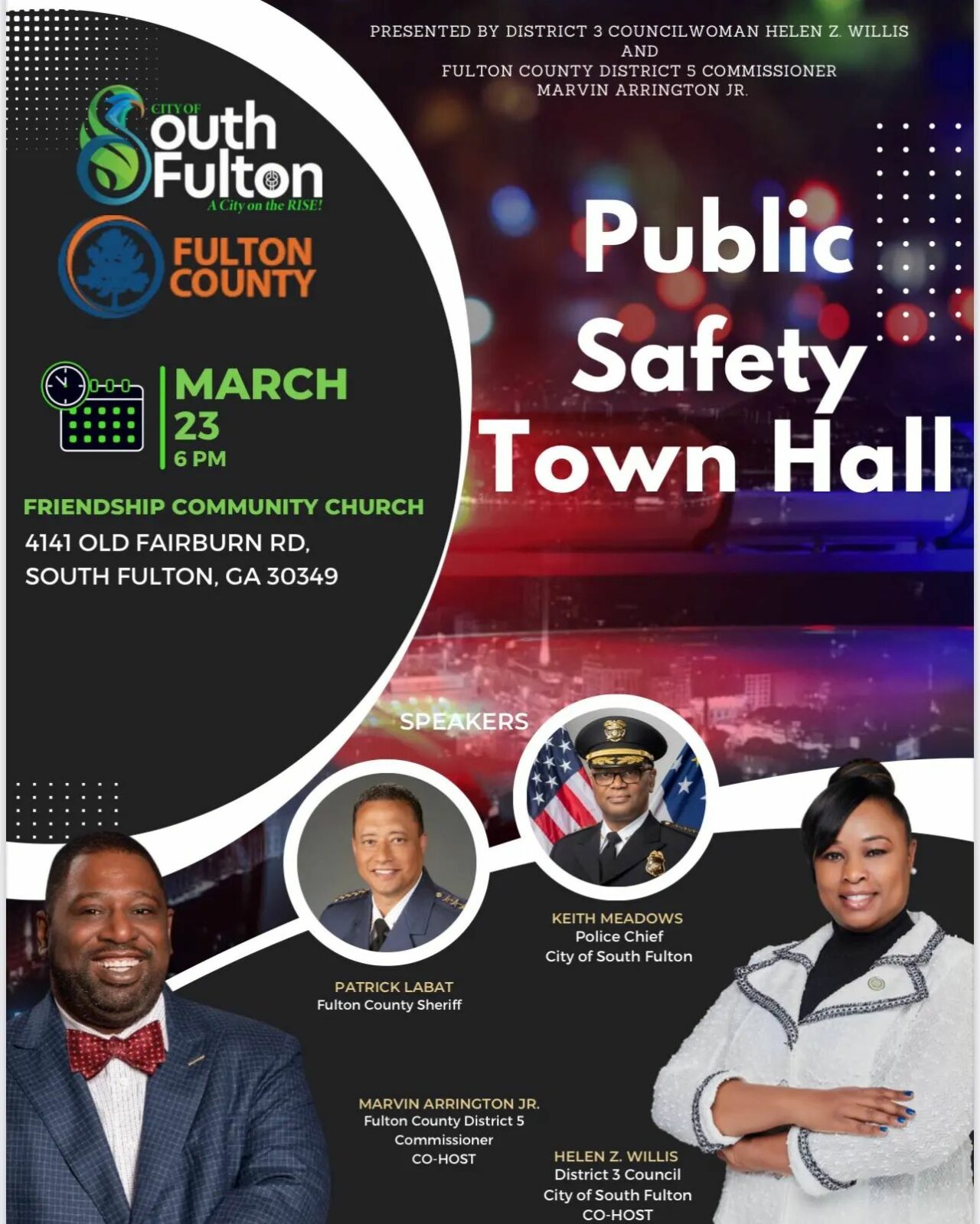 Public Safety Town Hall March 23, 2023 6pm to 8pm @cosfdistrict3 @hzw1 @fultoncomm5 @marvinarringtonjr fultoncountysheriff_patlabat Chief @meadows_keith